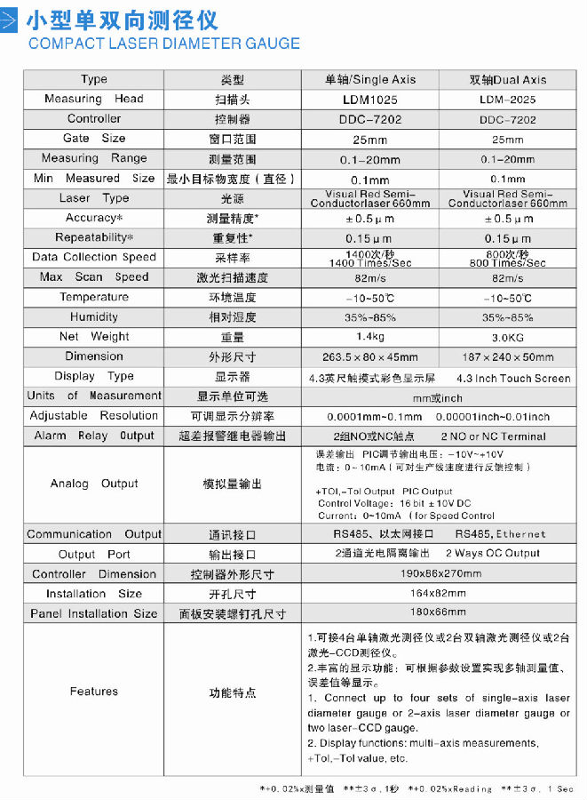 明銳激光測徑儀產(chǎn)品特點: