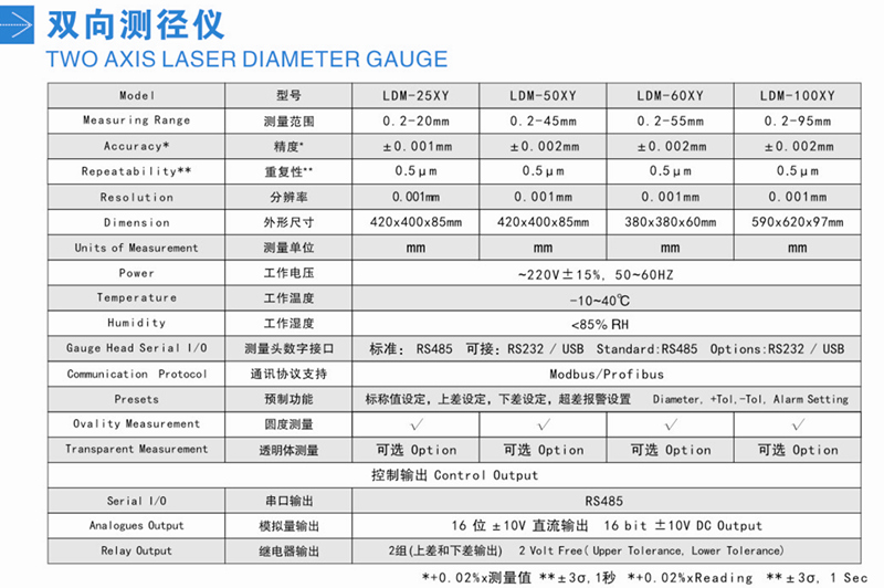 激光雙向測(cè)徑儀,是采用激光掃描原理進(jìn)行非接觸在線測(cè)量的高精度測(cè)量裝置,它在兩個(gè)方向(即X軸和Y軸)同時(shí)測(cè)量外徑,適用于金屬線材料、玻璃管、膠管、電線電纜等外徑的測(cè)量和控制,雙向同時(shí)測(cè)量,平均值顯示,克服了單向測(cè)徑儀無(wú)法測(cè)量不圓體的缺點(diǎn),可同時(shí)顯示線材、管材的外徑和不圓度。